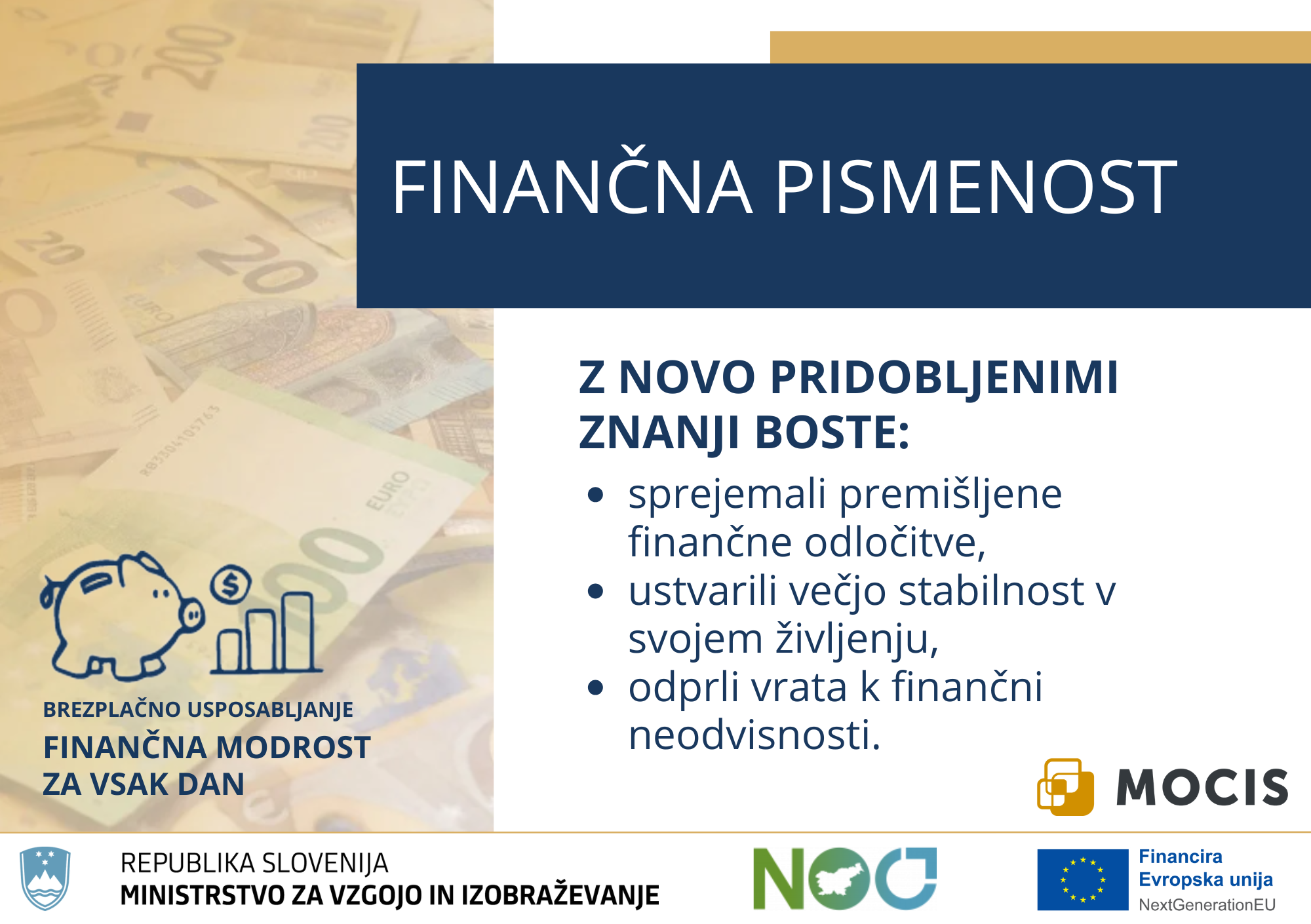 MOCIS, Center za izobraževanju odraslih, vas vabi k vpisu v program Obvladujem svoje finance, s katerim bi začeli v mesecu marcu.